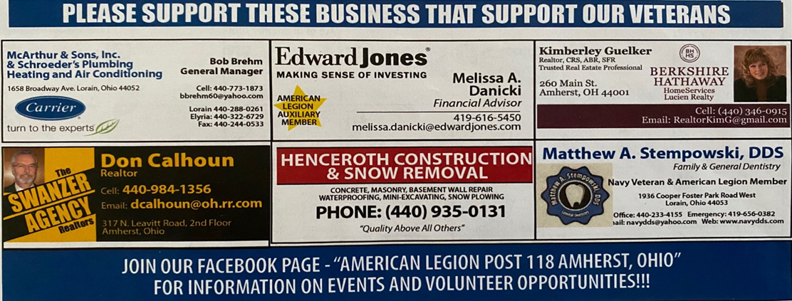 WEB PAGE: www.americanlegionpost118.org EMAIL: ej118@gmail.com